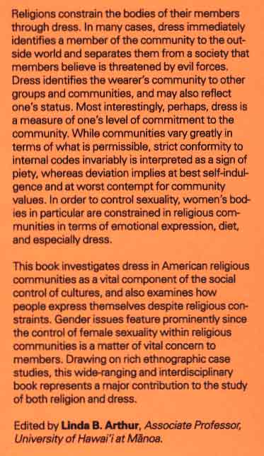 Religion, Dress and the Body Linda B. Arthur, Editor #KREL1227, $28.95 |