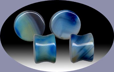 Agate Stone and Crystallized Solid Ear Plug Pairs, Tour other Natural