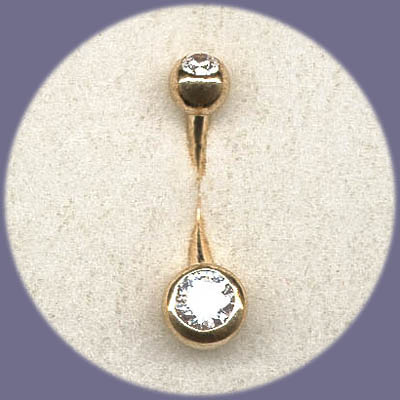 Hypoallergenic 14 Kt Gold Navel Curves 14 Gauge, Double, 2-Gems