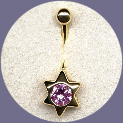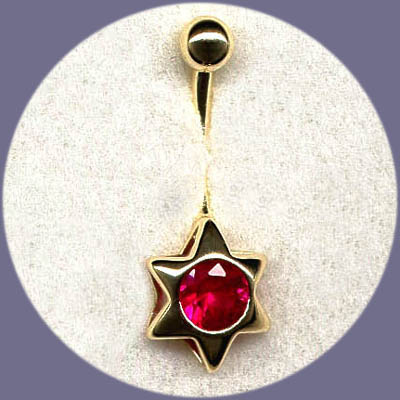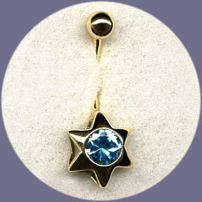 Hypoallergenic 14 Karat Star w / Gem Center