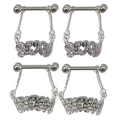 Nipple Dangle Sayings 14 Gauge 3/4" 316L Bar & Ball $9.00/Pair Includes 14 G Barbell