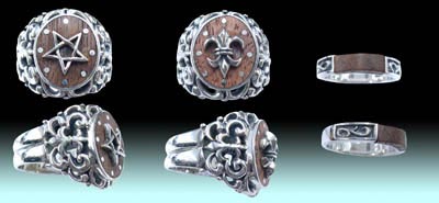 Rings with Wood Inlay, Coffin, Star, Box and Cross Shapes