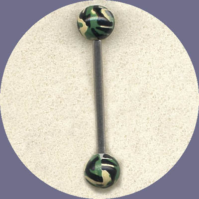 14 Gauge, Stainless Steel, Barbells, Navel Curve, Jungle Camo Camouflage, External Thread,