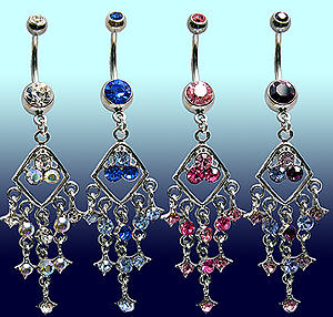 14 Gauge Fancy Gem Navel Jewelry Dangles