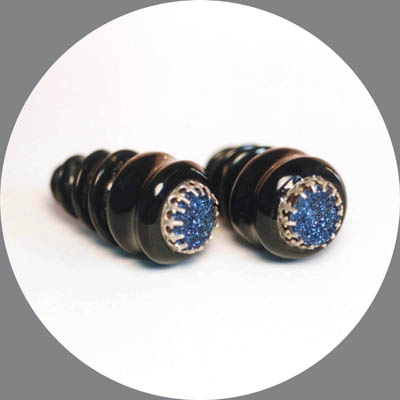 WB-8113, 3/4" $ 153 Carved Spiral of Buffalo Horn, Silver Setting, Druzy Gem |